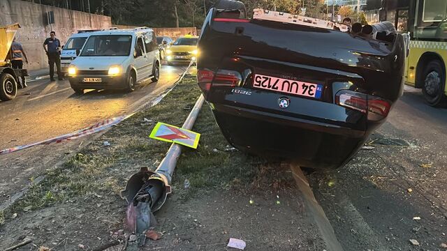 İstanbul Maltepe'de bir otomobilin aydınlatma direğine çarpması sonucu direk karşıdan gelen aracın üzerine devrildi. Kazada yaralanan olmadı