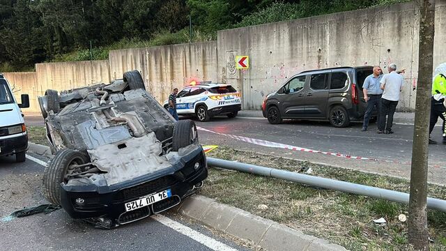 Maltepe'de, sürücüsünün direksiyon hakimiyetini kaybettiği otomobil refüjdeki ağaçlara ve aydınlatma direğine çarparak takla attı.