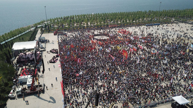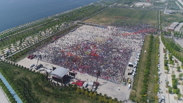 1 Mayıs Emek ve Dayanışma Günü nedeniyle kutlamalar Maltepe Miting alanında başladı, meydanı dolduranlar havadan görüntülendi.