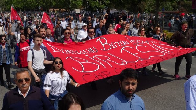 1 Mayıs Emek ve Dayanışma Günü'nde kutlamaların İstanbul'daki adresi Maltepe miting alanına gitmek isteyen gruplar yürüyüşe geçti. Sahil yolundan miting alanına doğru yürümeye başlayan gruplar, ellerinde Türk bayrakları ve flamalar taşıdı.