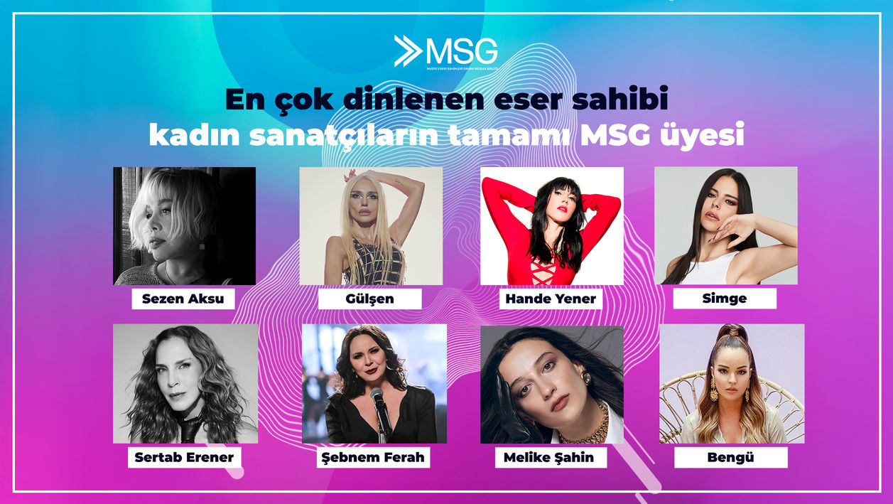 Kadın sanatçılar kategorisinde ise Sezen Aksu, Gülşen, Hande Yener, Simge, Sertab Erener, Şebnem Ferah, Melike Şahin ve Bengü gibi müzik dünyasının önde gelen isimlerinin MSG üyesi olması, hem dinleyicilerin kadın sanatçı tercihlerini hem de Türkiye müzik sektörünün üretim odağının büyük ölçüde MSG’de toplandığını bir kez daha gösterdi.