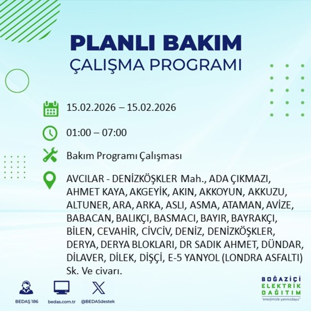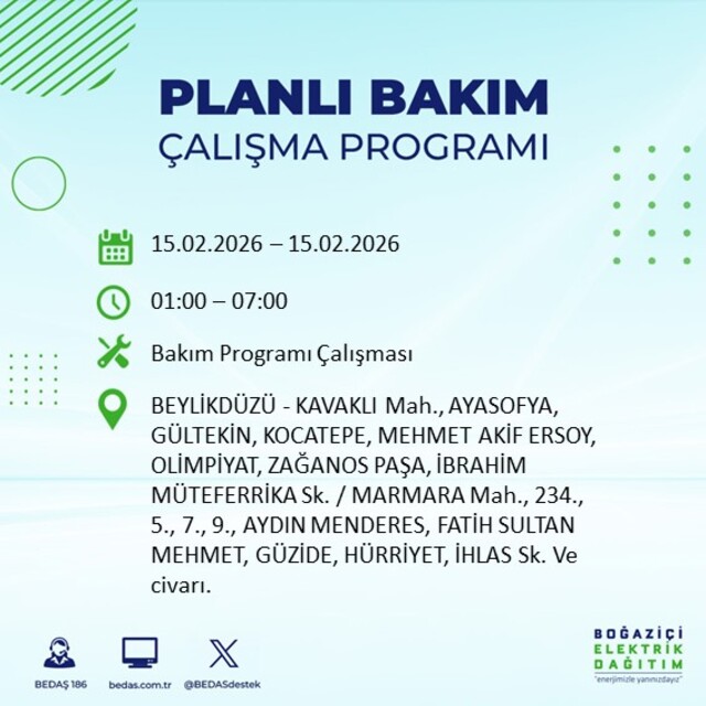 İstanbul'da 10 ilçede 7 saate varan kesinti! 15 Şubat Pazar elektrikler ne zaman gelecek?