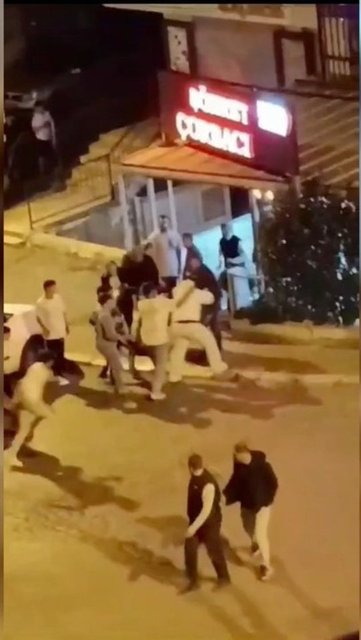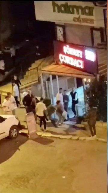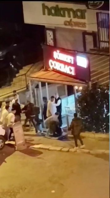 Yaşanan kavga anları cep telefonu kamerasına yansıdı. Görüntülerde karabalık gurubun bir kişiye saldırdığı ve darp ettiği görülüyor.