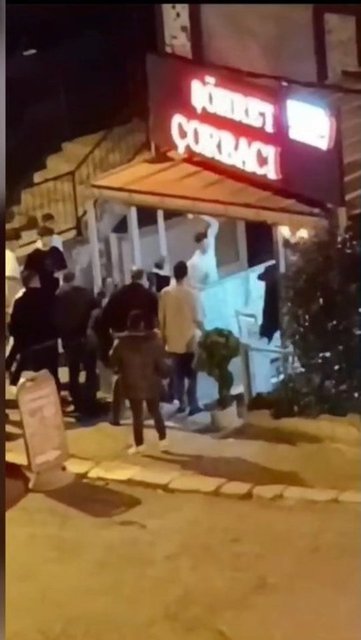 Caddede başlayan kavgaya karışan 1 kişi kaçarak bir çorbacıya sığındı. Kalabalık grup iş yeri içinde sıkıştırdığı kişiye tekme ve yumruklarla saldırmaya devam etti.