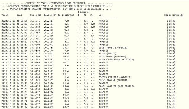 Türkiye'de meydana gelen son depremler vatandaşlar tarafından araştırılıyor. Bu sabah saatlerinde Akdeniz'de 5 büyüklüğünde bir deprem meydana geldi. "Kandilli Rasathanesi son dakika deprem" ve "AFAD son depremler" gibi kelimeler trendlere girdi. İşte 12 Ekim 2020 en son meydana gelen depremler...