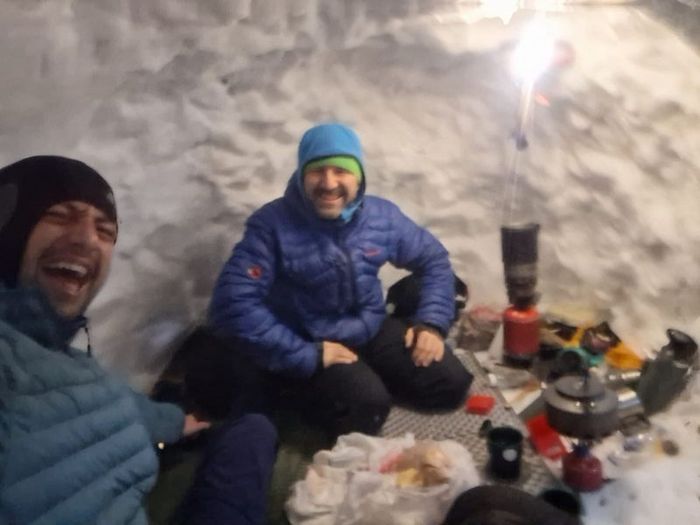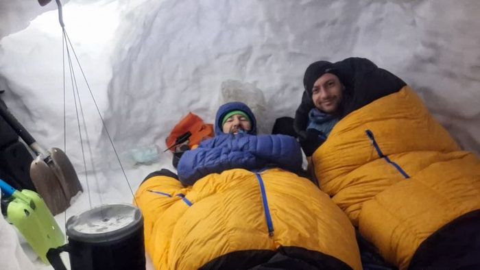 Dağcılar, yoğun kar ve tipi nedeniyle çadır yerine kar mağarası yaptılar. Kar mağarasının girişini dar bir geçitle kapatan dağcılar, yemeklerini de kar mağarasının içinde yapıp, yedi.