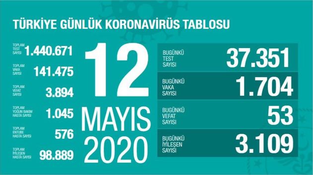 12 Mayıs (dün) koronavirüs tablosu aşağıdaki durumdaydı.