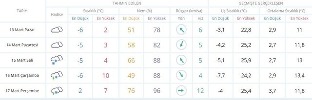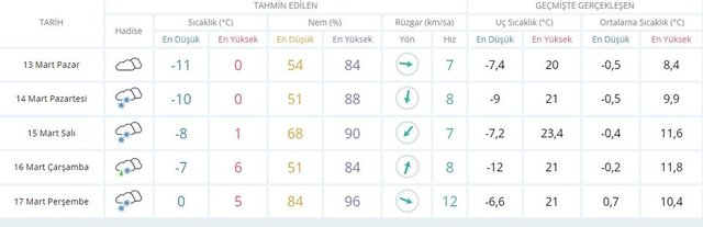 14 MART BOLU 5 GÜNLÜK HAVA DURUMU