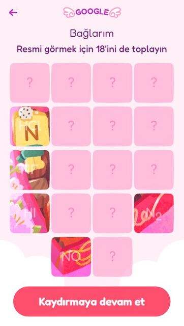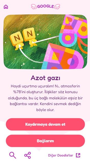 Bir element ile bağlantı kurduğunuzda aranızdaki ilişkinin nasıl olacağına dair bilgi veren bu özel Doodle'da tüm bağları topladığınızda 'Bağlarım' seçeneğinden şimdiye kadar eşleştiğiniz elementlere bakabilir ve Sevgililer Günü'ne özel resmi görüntüleyebilirsiniz.
