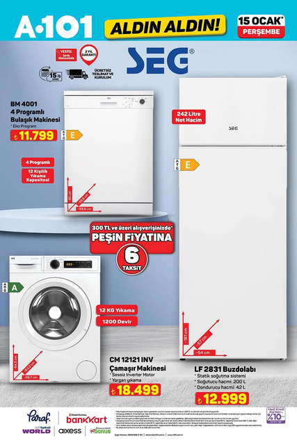 A101 marketlerinde 15 Ocak aktüel ürünleri belli oldu. Perşembe gününden itibaren satışta olacak ürünler alışverişseverler tarafından merak ediliyor. Piyano, motosiklet, cep telefonu, çamaşır makinesi, elektrikli süpürge, şifonyer, bebek yatağı gibi birçok ürün raflarda yerini alacak. İşte 15 Ocak A101 Aldın Aldın kataloğu...