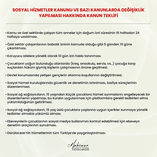 AK Parti milletvekillerinin imzasını taşıyan, sosyal medyaya ve doğum iznine yönelik düzenlemeleri de içeren Sosyal Hizmetler Kanunu ve Bazı Kanunlarda Değişiklik Yapılması Hakkında Kanun Teklifi, TBMM Başkanlığına sunuldu.