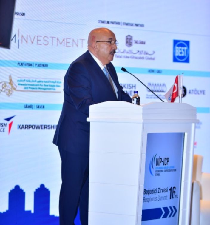UİP Onursal Başkanı Dr. Talal Abu-Ghazaleh, dünyanın zor günlerden geçtiğini belirterek, karşı karşıya kalınan temel zorluklardan bahsetti. Bunlardan ilkinin iklim konusu olduğunu belirten Abu-Ghazaleh, bu konuya ilk kez 1999 yılında dikkat çektiklerini ve dünyanın devamlılığı için mutlaka bu konuda önlemler alınması gerektiğini söyledi. İkinci konunun Birleşmiş Milletler'in artık paralize olması ve devre dışı kalması olduğunu kaydeden Abu-Ghazaleh, BM'nin mutlaka kendi içerisinde reformlar yapması gerektiğini iletti. Üçüncü problemin ABD ile Çin arasında yaşananlar olduğunu ve Tayvan ve Güney Çin Denizi üzerindeki tartışmaların çok önemli bir problem olduğunun altını çizen Abu-Ghazaleh, dünyadaki bir diğer meydan okumanın da bilgi devriminin sonuçları üzerinden gerçekleştiğini ifade etti. Yaşanan dijitalleşmeyle birlikte karşımıza yapay zekanın çıktığını söyleyen Abu-Ghazaleh, "Bu alanda çok ciddi gelişmeler yaşanıyor ve bilgisayar programları giderek daha akıllı hale geliyor. Makineler, makinelerin arkasındaki beyinlerden daha da zeki ve akıllı hale gelmeye başlıyor. Şu anda uzmanlar bilgisayarların ya da yapay zekanın dünyanın yöneticisi olmasını engellemeye çalışıyorlar. İnsanlar yapay zekanın çalışanları olmasın diye uğraşıyorlar, Bu şaka değil, gerçek" dedi.
