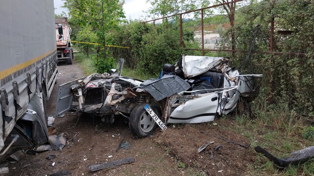 Kazada hurdaya dönen otomobil kamyonun yan kısmında kaldığı için yoldan geçen araç sürücüleri tarafından fark edilmedi.