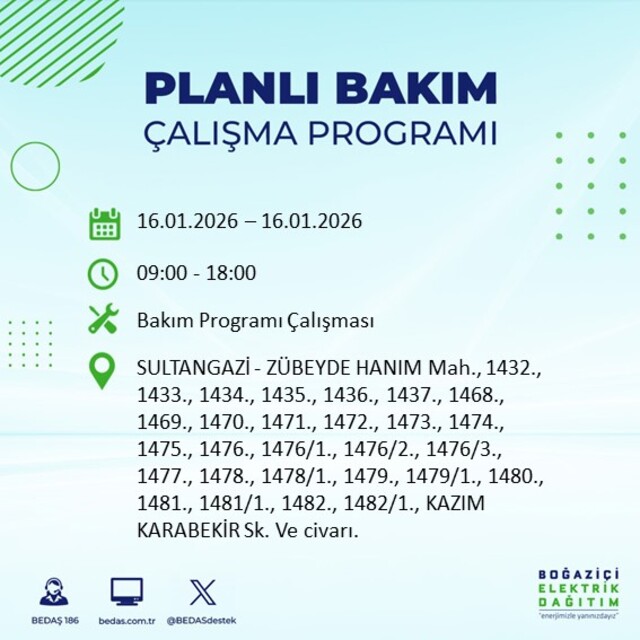 Boğaziçi Elektrik Dağıtım A.Ş. (BEDAŞ), İstanbul genelinde 16 Ocak Cuma günü planlı elektrik kesintileri uygulanacağını açıkladı. Şirketin açıklamasına göre, bakım ve onarım çalışmaları kapsamında birçok ilçede elektrik geçici olarak kesilecek. Peki, 16 Ocak Cuma İstanbul'da elektrikler ne zaman gelecek? İşte merak edilen güncel bilgiler...