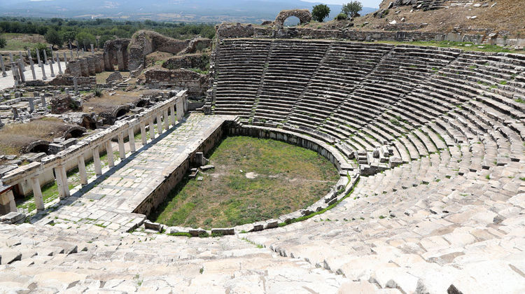 Döneminin en iyi heykeltıraşlık merkezleri arasında gösterilen Afrodisyas, özellikle stadyum, Sebasteion tapınağı, hamam, antik tiyatro, dev şehir havuzu ve Tetrapylon kapısı gibi Roma döneminin ihtişamını yansıtan yapılarıyla dikkati çekiyor.