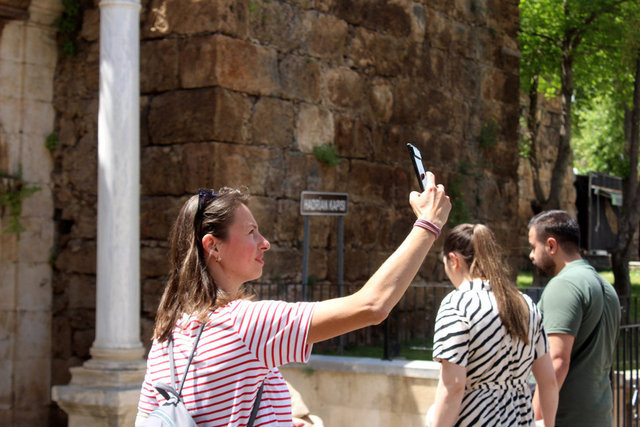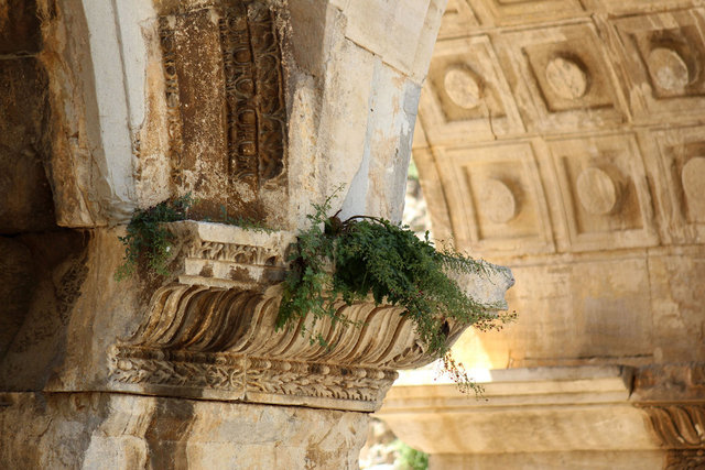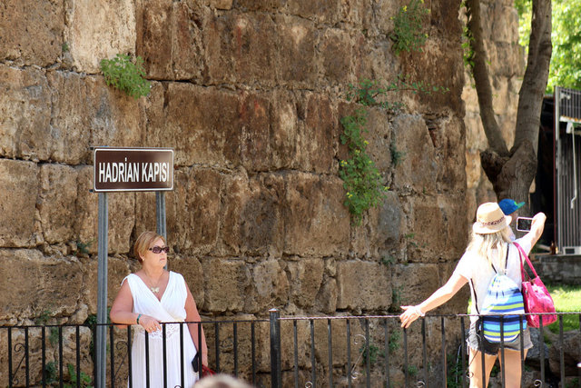 Antalya'da her gün binlerce turistin ziyaret edip fotoğraf çektirdiği, 'Üç Kapılar' olarak bilinen 1893 yıllık Hadrianus Kapısı'da, bakımsızlık nedeniyle yeşermeler oluştu