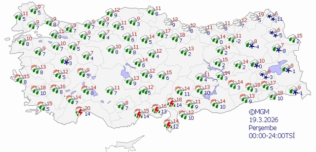 Türkiye genelinde 19 Mart Perşembe günü için hava durumu merak konusu oldu. Meteorolojik verilere göre Türkiye genelinde serin ve yağmurlu bir hava hakim olması bekleniyor. Hava sıcaklığının ise, güney ve batı kesimlerde 2 ila 4 derece azalacağı, diğer yerlerde önemli bir değişiklik olmayacağı tahmin ediliyor. Peki, bugün hava nasıl olacak? İşte İstanbul, İzmir, Ankara hava durumu tahminleri...