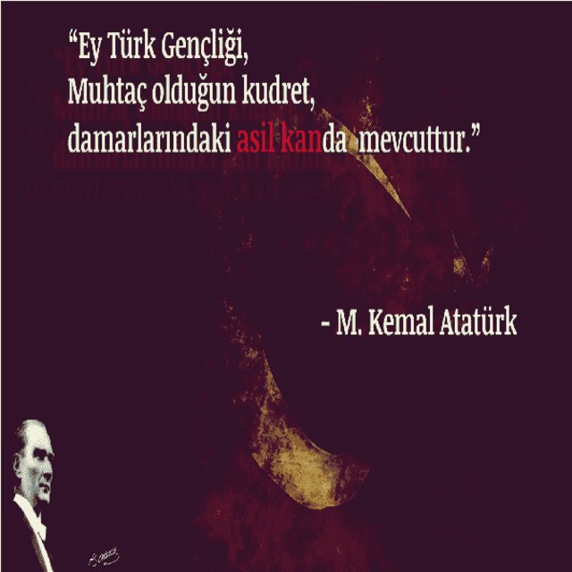 Benim naçiz vücudum elbet bir gün toprak olacaktır, ancak Türkiye Cumhuriyeti ilelebet payidar kalacaktır. (Mustafa Kemal ATATÜRK)