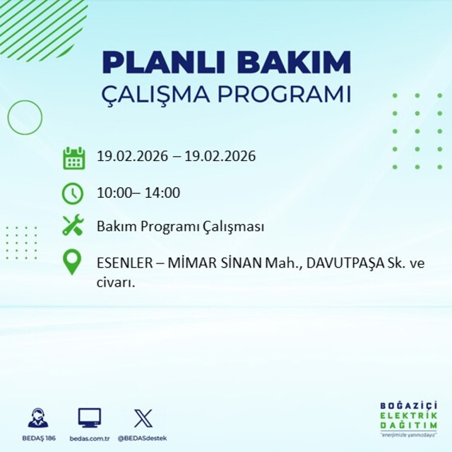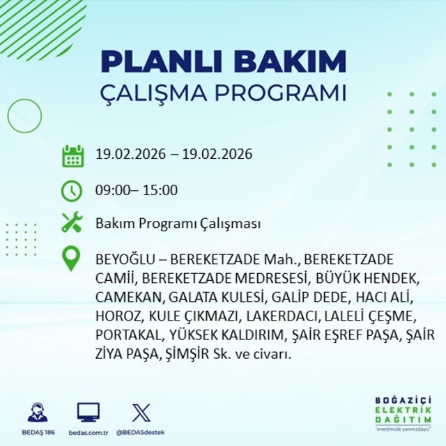 19 Şubat Perşembe günü İstanbul’un bazı ilçelerinde planlı elektrik kesintileri uygulanacak. BEDAŞ tarafından yapılan açıklamada, kesintiden etkilenecek bölgeler ile enerji kesintisinin başlayış ve bitiş saatleri duyuruldu. Günlük planlarını buna göre yapmak isteyen kişiler, “İstanbul’da elektrikler saat kaçta gelecek?” sorusuna yanıt arıyor. İlçe ilçe 19 Şubat elektrik kesintisi listesi ve BEDAŞ kesinti sorgulama linkine dair detaylar haberimizde yer alıyor. İşte bilgiler...