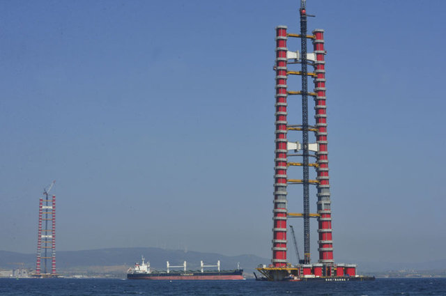 Her iki yakada 333'er metrelik iki ayağı oluşturacak toplam 4 kulede 32'şer bloktan 27'sinin yerleştirilmesiyle 259 metre yüksekliğe ulaşıldı. Böylece kulelerin yüzde 78'lik bölümü tamamlandı.