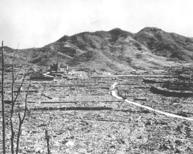Fotoğrafta, atom bombasından sonra Nagazaki kentinin yanmış şehir manzarası görülüyor. Kaynak: AP