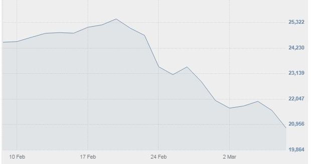 İtalyan borsası da ülkede ekonomik faaliyetlerin büyük ölçüde akmasını fiyatlandırması dikkati çekti. FTSE MIB 30 endeksi ise 21 Şubat’tan bu yana yüzde 16 değer kaybederek 24.777,15 puandan 20.799,89 puana geriledi. Borsada bu sürede 95 milyar euronun eridiği belirtiliyor.