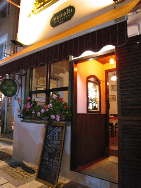 Mekan, meşhur Ermeni mezesi topik, kuzu gömleğine sarılı hurma kebabı, uskumru taratorunun yanında geniş bir meze menüsüne sahip. Türk sanat müziği ve eski pop şarkıları çalan İnciraltı, içeceklerini yudumlarken leziz yemekler tatmak isteyenlerin favorisi olacak.