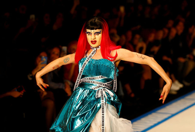 Sokak kültürüne gönderme yapan koleksiyonda üçgen kollar, rüzgarlık görünümlü elbiseler, eşofman kombinasyonları, saten elbiseler ön plana çıktı.