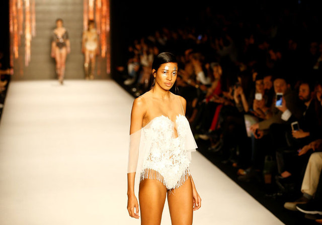 Mayo ve bikini tasarımcısı Cihan Nacar’ın Sonbahar-Kış 2018-19 defilesinde işlemeli parçalarıyla öne çıktı.