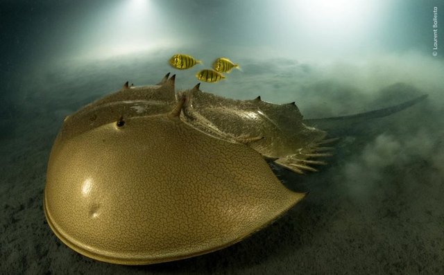 Fransız fotoğrafçı Ballesta tarafından çekilen görüntü Filipinler'in Pangatalan Adası'da korunan at nalı yengeçlerini gösteriyor.