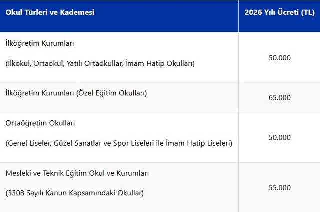 AA muhabirinin 2026 yılı Merkezi Yönetim Bütçe Kanunu Teklifi'nden yaptığı derlemeye göre, pansiyon ücretleri ilköğretim kurumları ve ortaöğretim okullarında gelecek yıl 50 bin liraya yükselecek.