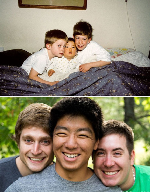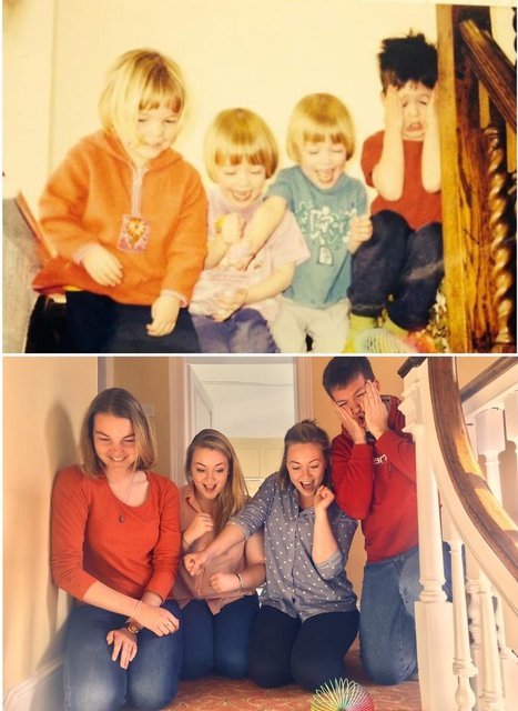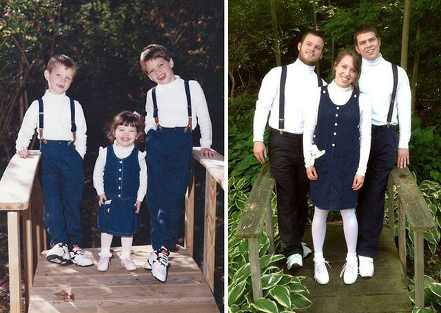 Anneleri için mükemmel bir doğum günü sürprizi hazırlamaya koyulan kardeşler 23 yıllık çocukluk fotoğraflarını yeniden canlandırdılar.