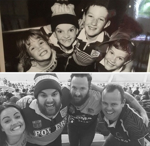 "Beş Yıllık Fotoğraf Projesi" adı altındaki bu sevimli ve nostaljik çalışmaların kahramanları soldan sağa sıralı şekilde John Wardlaw, Mark Rumer, Dallas Burney, John Molony ve John Dickson. İşte yıllara göre o değişim...