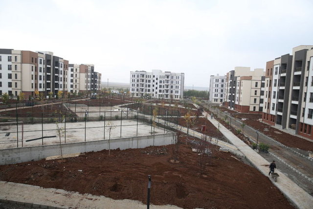 Depremlerin yıkıma yol açtığı kentler asında yer alan Diyarbakır'da, merkez Bağlar ilçesindeki Oğlaklı Mahallesi'nde etaplar halinde afet konutları yükseliyor.