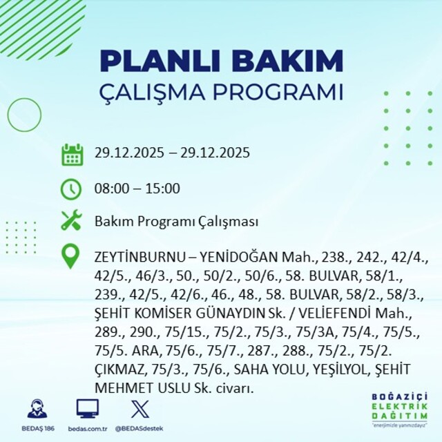 29 Aralık 2025 planlı elektrik kesintisi: Elektrikler ne zaman gelecek?