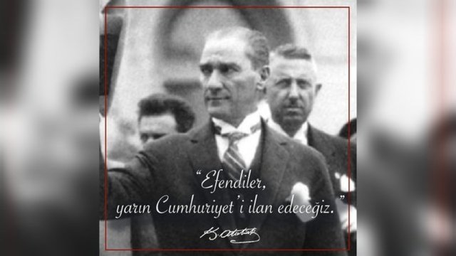 * Türkiye Cumhuriyeti mesut, muvaffak ve muzaffer olacaktır. 29 Ekim 1923 (Nutuk II, S. 814-15)