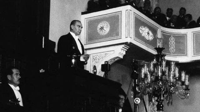 Türkiye Cumhuriyeti mesut, muvaffak ve muzaffer olacaktır. 29 Ekim 1923 (Nutuk II, S. 814-15)