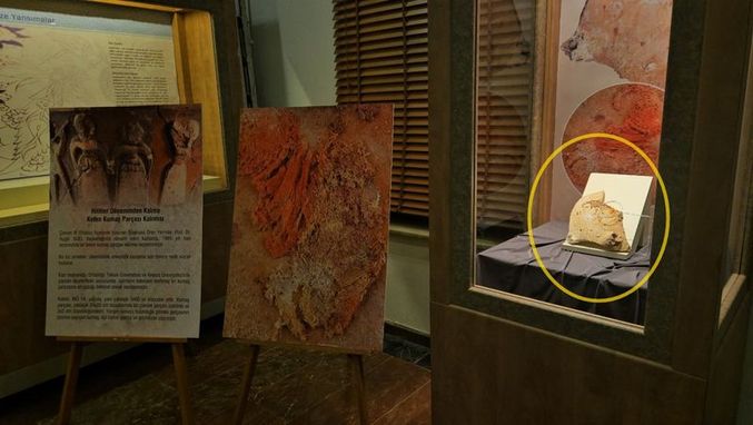 Milattan önce 14’üncü yüzyıldan kalma, ketenden üretildiği belirlenen kumaş, Çorum Müzesi'nde koruma altına alındı. 24x20 santim ebadındaki bir çömlek paçası üzerine yapışan 3x3 santim büyüklüğündeki kumaş parçası, ilk kez görücüye çıktı.