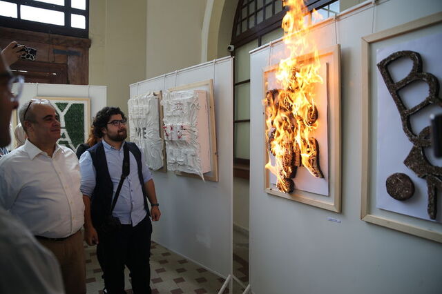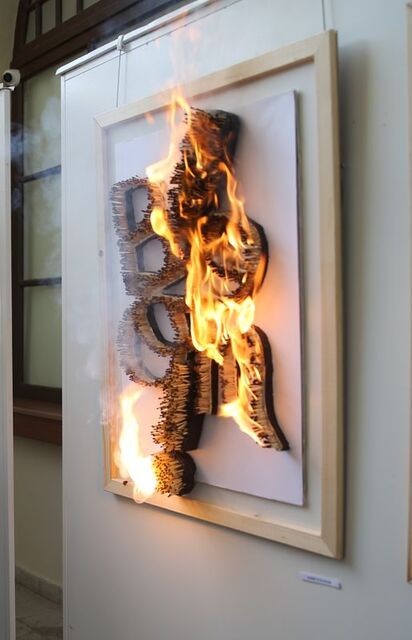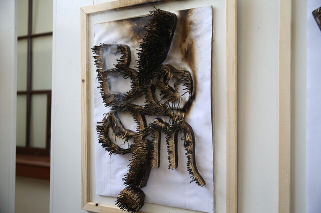Aydoğan, katılımcılar sergiyi gezdiği sırada eserindeki kibritleri tutuşturdu ve vermek istediği mesajı sergiyi gezenlere aktardı. Yanan kibritler daha sonra su ile söndürüldü.