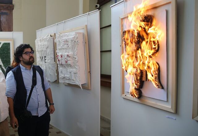 Edirne'de düzenlenen bir sergide eser sahibi 'anlık öfkeye' dikkati çekmek amacıyla kibrit çöplerinden hazırladığı çalışmasını yaktı