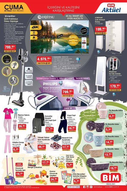 BİM 30 Nisan 2021 aktüel ürünler kataloğu çıktı. BİM'de bu hafta; Dijitsu 65″ Smart Uydu Alıclı Led TV, Philips Buhar Jeneratörlü Ütü, Kumtel 3'lü Ankastre Set, Kumtel Mini Fırın gibi birçok indirimli fiyat yer alıyor. İşte, 30 Nisan BİM indirimli ürünler listesi...