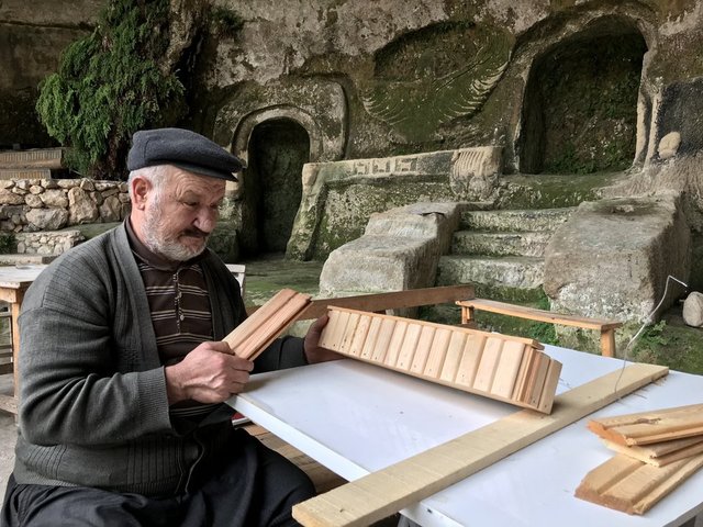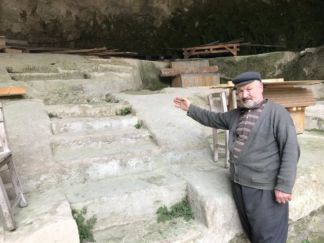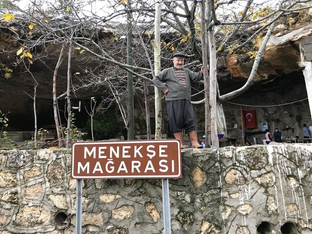 "Yine 1993 yılında Konya Selçuk Üniversitesi Rektörü Halil Cin tarafından 1993 yılında mağaranın Menekşe Mağarası olarak açılışı yapıldı. 1994 yılında Kleopatra resmini kayalara oydum. Burası 537 metrekare. Burayı tabiata uygun olarak çıkartmalar yaptım. Halen yapmaya devam ediyorum."