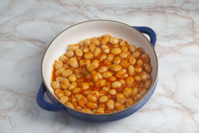Fırına gönderilen kuru fasulye, yaklaşık 30 dakika boyunca 200 derecede piştiğinde dışarıda yediğiniz kuru fasulye lezzetini elde edeceksiniz