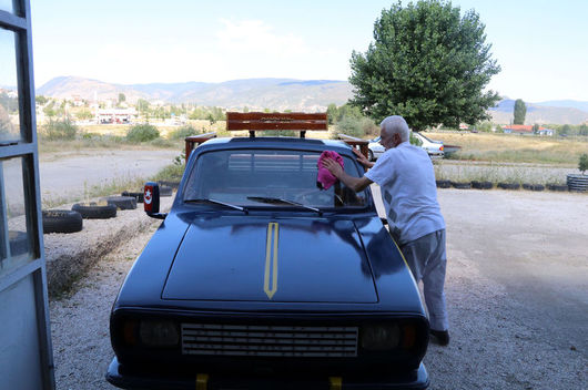 Ahşapla kapladığı kamyonetin direksiyonuna kalp içinde 'Canım Babam' yazan Maraz, babasının çok istemesine rağmen, yeterli parayı biriktiremediği için bir Anadol'a sahip olamadığını belirtti.
