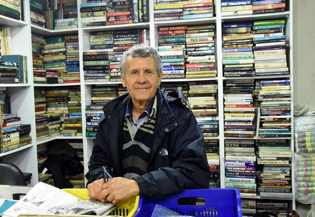 DHA'nın haberine göre Karabil, dükkanındaki rafları 46 yılda her çeşitten toplam 100 binin üzerinde kitapla doldurdu.