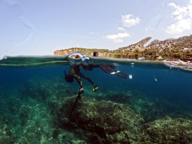 Alanya ilçesinde dalış yapan Samet Alabacak, başta aslan balığı olmak üzere, balon balığı ve zehirli deniz kestaneleri avlayarak su altı ekosisteminin gönüllü bekçiliğini yapıyor