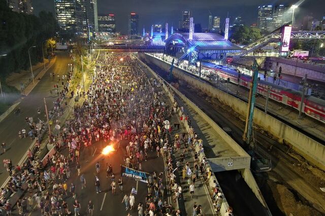 Tel Aviv, Hayfa ve Batı Kudüs'ün yanı sıra ülkenin çeşitli noktalarında yapılan yürüyüş ve protestolarda, hükümetin istifası ve esirlerin geri getirilmesi talep edildi.