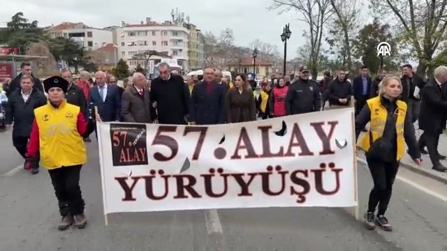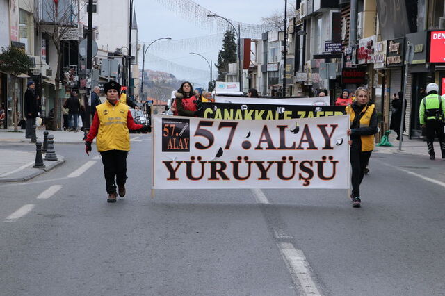 Saygı duruşunda bulunulması ve İstiklal Marşı'nın okunmasının ardından konuşan 57. Alay Yürüyüş Komitesi Başkanı Hikmet Yılmaz, 57. Alay'ın hatırasını yaşatmak amacıyla 16 yıldır Tekirdağ'dan Çanakkale'ye yürüyüş düzenlediklerini söyledi.