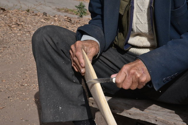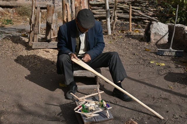 Keser, törpü, çakı ve zımpara yardımı ile farklı ağaç türlerinden baston, tarama küreği, rençber sabanı, tütün dikme kazığı, oyun kaşığı gibi ürünler yapan Aktaş, bunları çevre mahallelere satıyor. Aktaş, el emeği ürünlerini yarım asrı aşkın bir süredir yapmayı sürdürüyor.