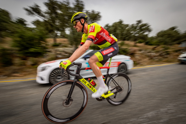 Bodrum-Kuşadası etabını birinci olarak bitiren DSM-Firmenich Takımı'ndan Tobias Andresen Turkuaz Mayo'yu etap boyunca taşıdı.